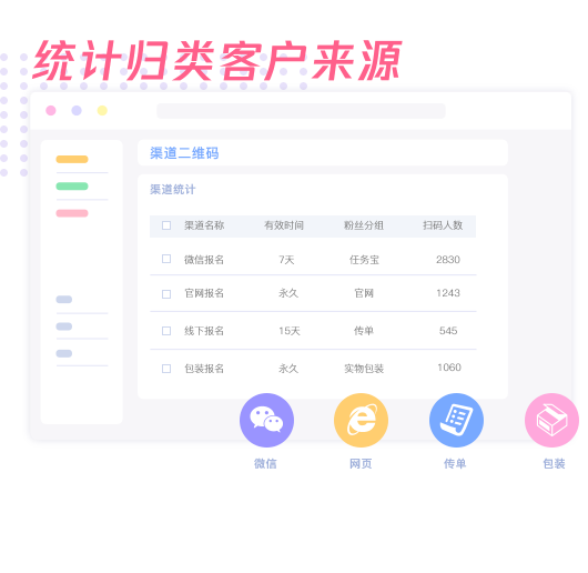 统计各个渠道关注公众号的用户来源节约营销成本 · 自动用户归类 · 提高转化率